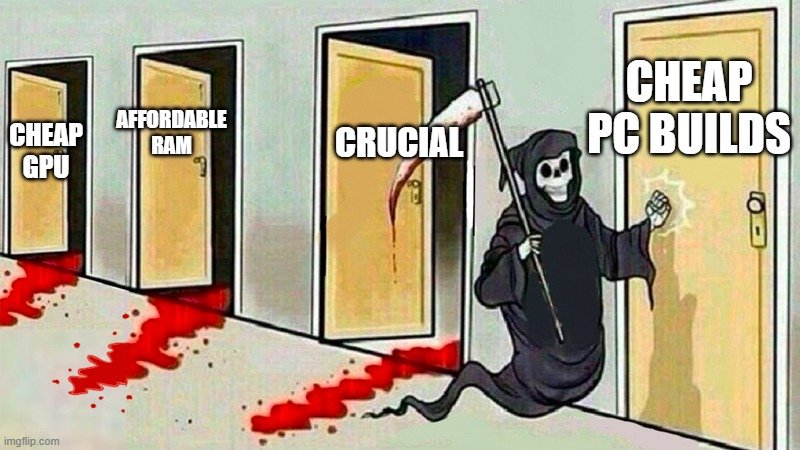 Y esto no solo ha hecho mas que empezar. Crucial(la marca del hogar de micron) la han cerrado, o sea la marca que durante años con la linea valueram ha salvado la pc de mas de uno(yo me incluyo) fue cerrada para siempre.(Adios crucial, que la fuerza te acompañe).